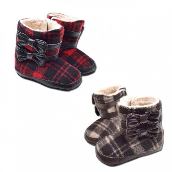 더블리본 체크 유아 털부츠 보행기화 310036