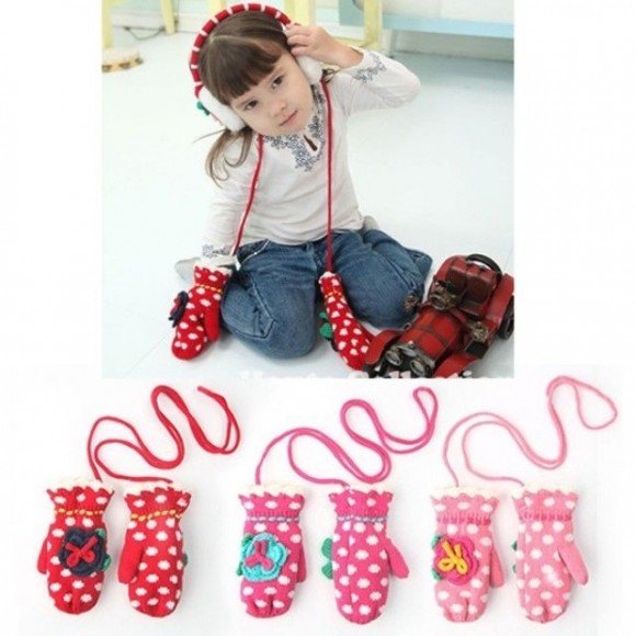 니트꽃장갑 FREE 유아동 니트장갑 겨울 목걸이 털장갑