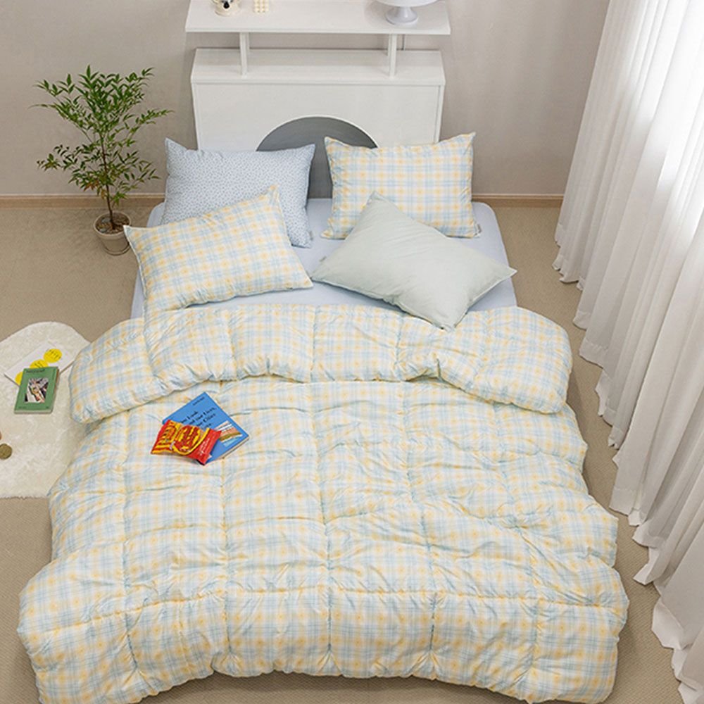 블루옐로우 체크 슈퍼싱글 차렵 이불 베개커버 세트